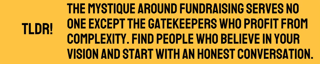 The mystique around fundraising and cap tables serves no one except the gatekeepers who profit from complexity. When you strip away the jargon and expensive intermediaries, it’s really about finding people who believe in your vision and structuring fair deals that align everyone’s interests.